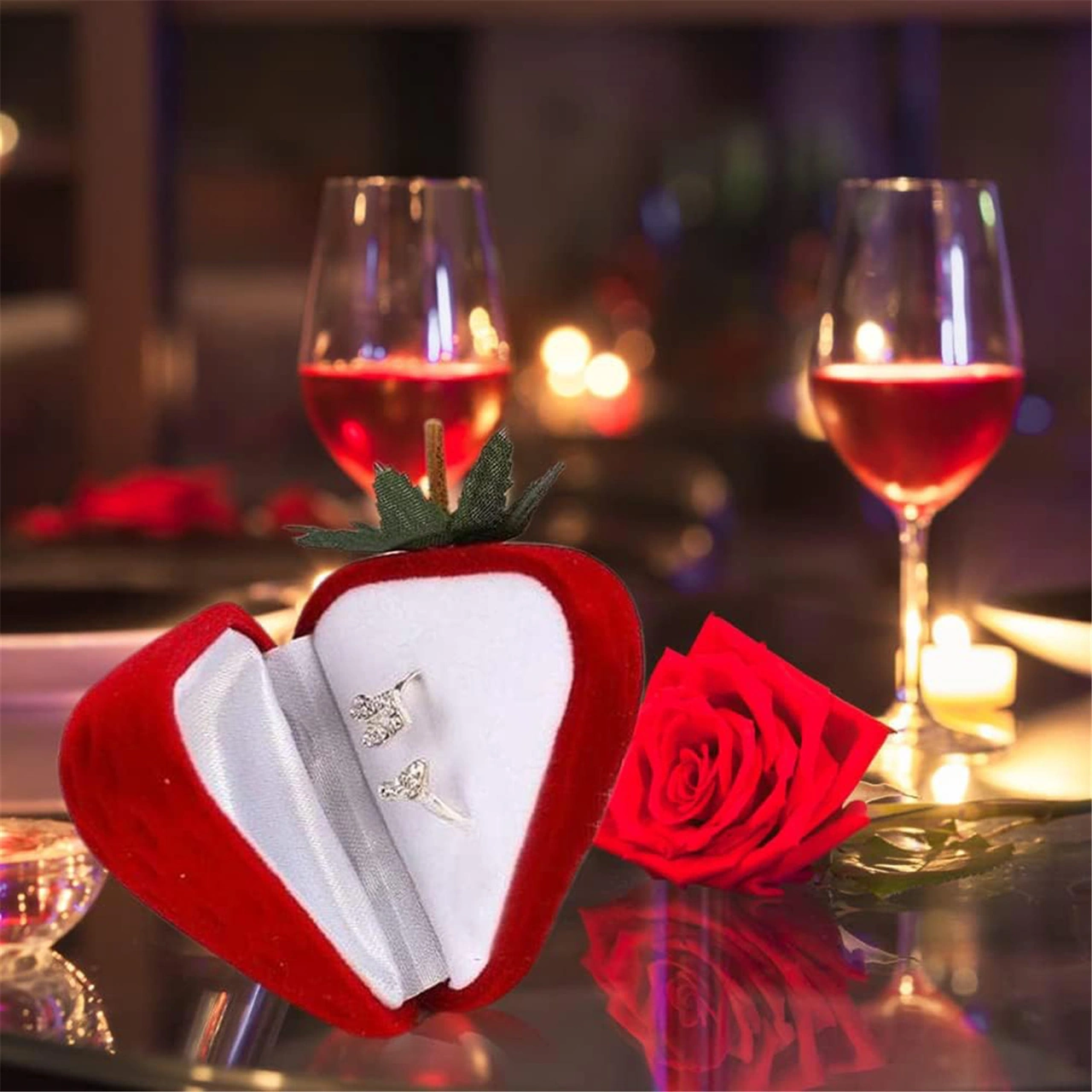 Konesam Kırmızı Çilek Şekilli Gümüşlük Kutusu - Evlilik/valentin Hediyesi - Kolye, Küpe Ve Yüzük Saklama Kutusu - 5x4.5cm Kırmızı