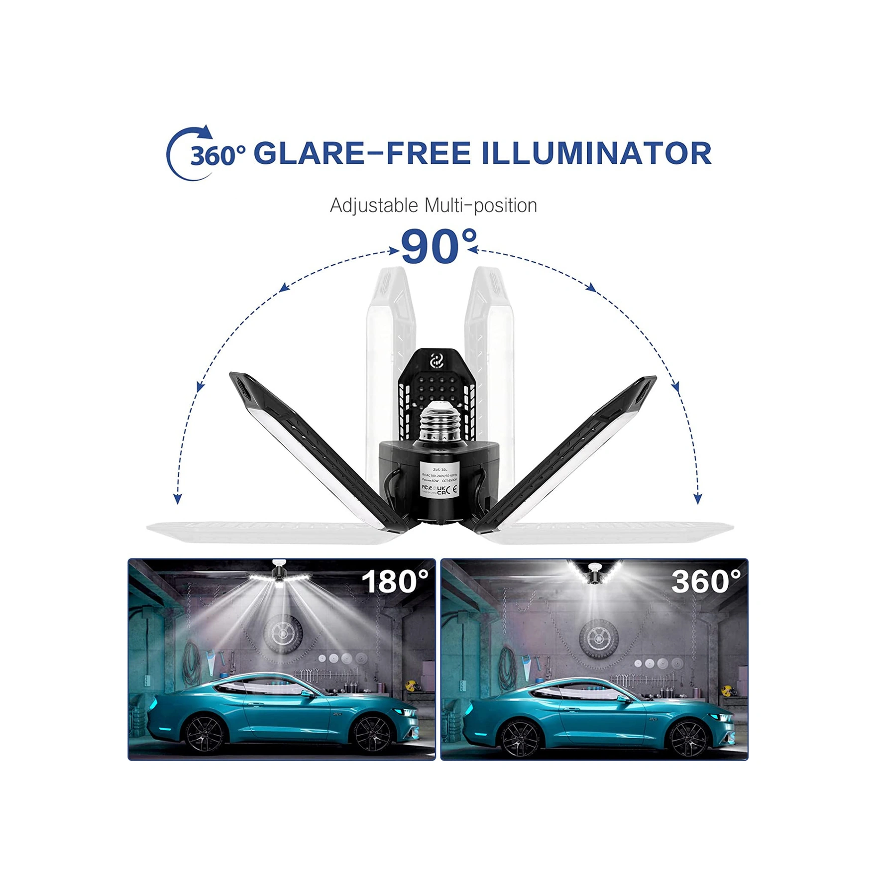 Konesam Led Garaj Lambası 3 Yapraklı 144 Led 8000 Lumen 6500k Ayarlanabilir Işık Yönü 36w Akıllı Ev Aydınlatma Sistemi Siyah Abs Siyah
