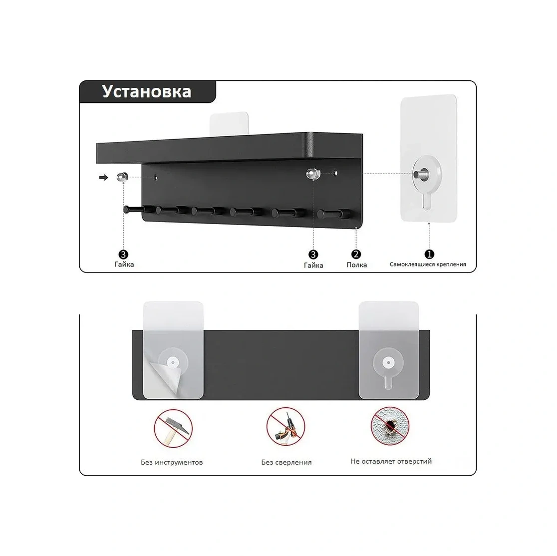 Konesam Mat Siyah Duvar Organizörü - 6 Çelik Kanca İle Anahtar, Gözlük, Cüzdan Ve Küçük Eşya Saklama - Ev Dekorasyonu İçin Dayanıklı Metal Tasarım Siyah