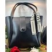 Kontrast Biye Detaylı Modern Dikey Tote Çanta Love Askılı Siyah