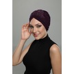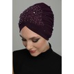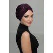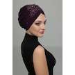 Kopma Astarlı İşlemeli Mor Dantel Motifli Hazır Türban Tesettür Abiye Bone Mor