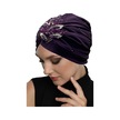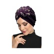 Kopma Astarlı İşlemeli Mor Payetli Yaprak Motifli Hazır Türban Tesettür Abiye Bone Mor