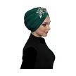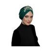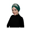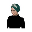 Kopma Astarlı İşlemeli Yeşil Sarı Dantel Motifli Hazır Türban Tesettür Abiye Bone Yeşil - Sarı