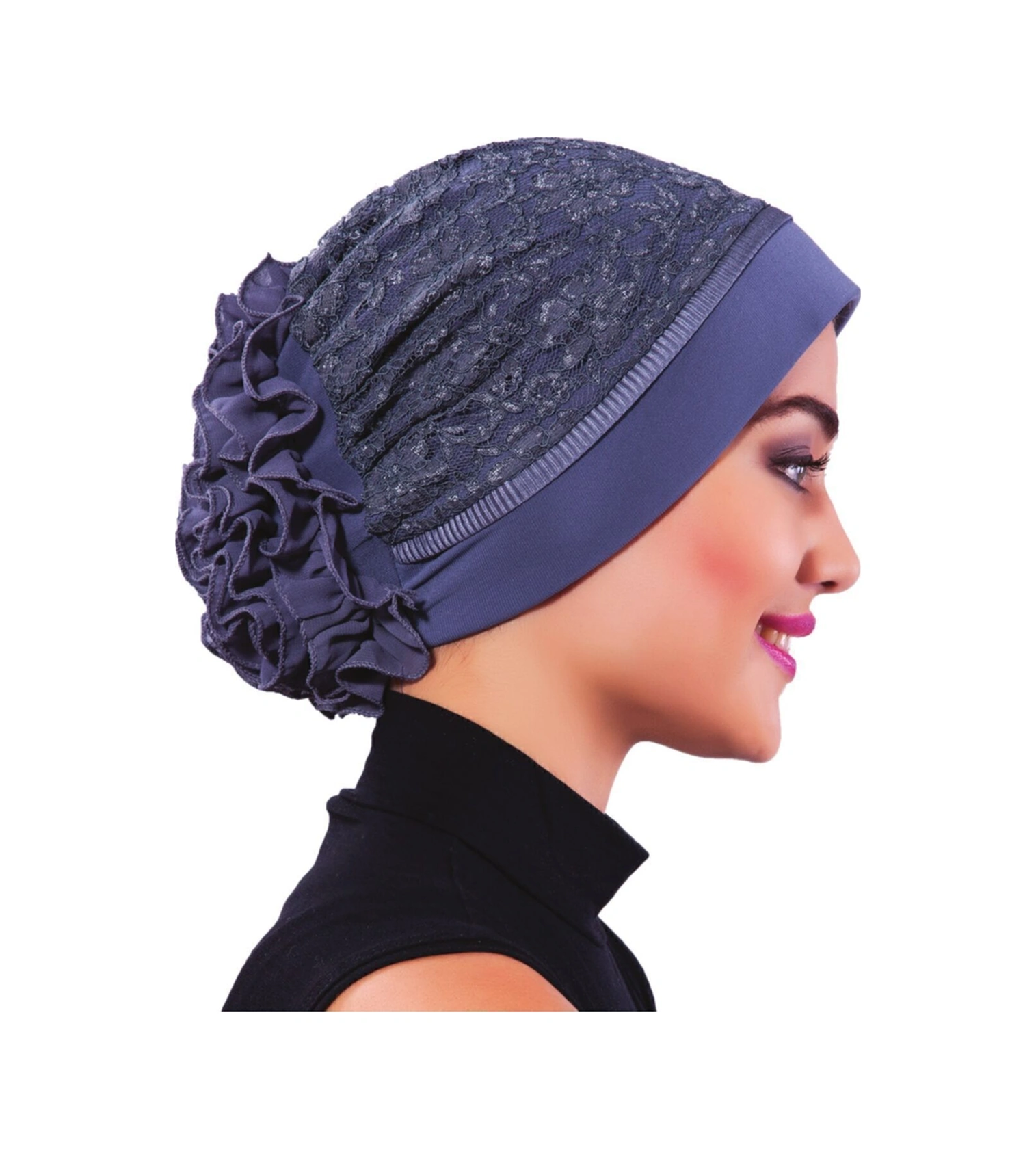 Kordoneli Arkası Fırfırlı Önü Plise Biyeli Koyu Gri Hazır Türban Tesettür Bone Koyu Gri