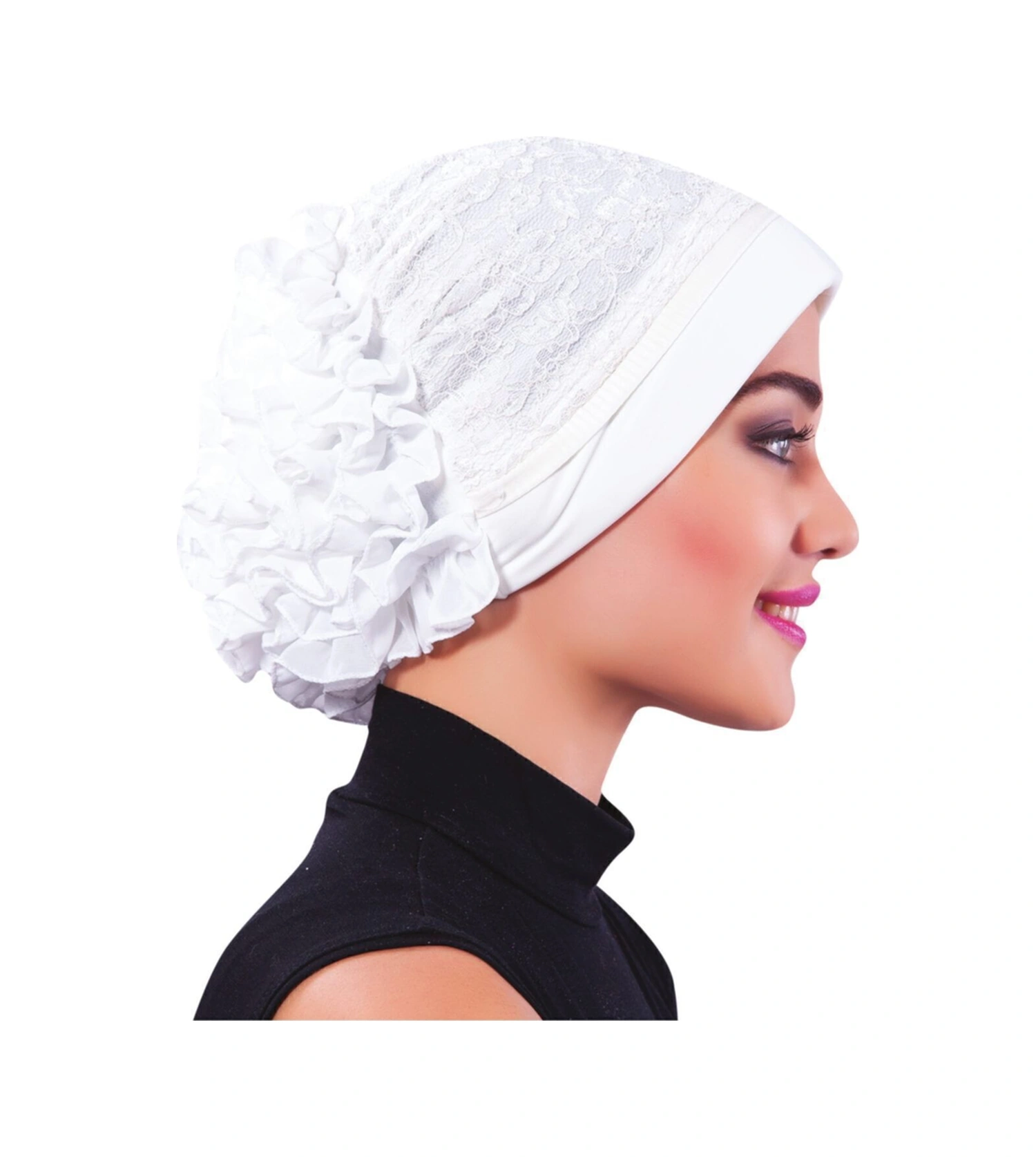 Kordoneli Arkası Fırfırlı Önü Plise Biyeli Krem Hazır Türban Tesettür Bone Krem