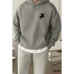 Kaixinjiuhao Kadın Moda Rahat Eğlenceli Baskı Kapşonlu Kazak Gevşek Spor Üstleri Kazak Gri