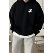 Unisex Sırt Baskılı Kapüşonlu Üç İplik Oversize Sweatshirt - Siyah Siyah