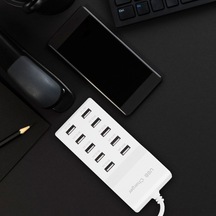 Kosona 10 Port Usb Akıllı Hızlı Şarj Cihazı, 10a Toplam Çıkış, Aşırı Şarj Korumalı, Ev Ofis Seyahat İçin Evrensel 100-240v Avrupa Standartı