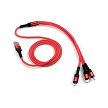 Kosona 1.2 Metre Kırmızı 3'lü Usb Şarj Kablosu - Lightning, Type-c Ve Micro Usb Uçları İle Hızlı Şarj