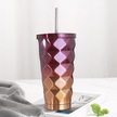 Kosona 500ml Mor Gradyan Diamond Desenli 304 Paslanmaz Çelik Vakumlu Isı Saklama Bardak, Pipet Ve Kapaklı, Ofis/seyahat İçin Diğer
