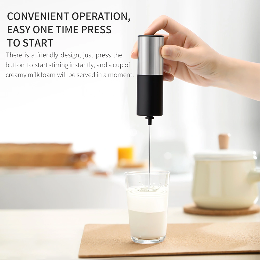 Kosona El Tipi Elektrikli Süt Köpükleyici 14000rpm Hızlı Çırpıcı 304 Paslanmaz Çelik Kahve Latte Çay İçin Pilli Pil Yok Siyah Ve Gümüş