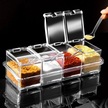 Kosona Ev Mutfak 4 Bölmeli Transparan Baharat Kutusu, Tuzluk Depolama Kutu, Pişirme İçin Şeffaf Baharat Kabı Kaşık İle ŞEffaf