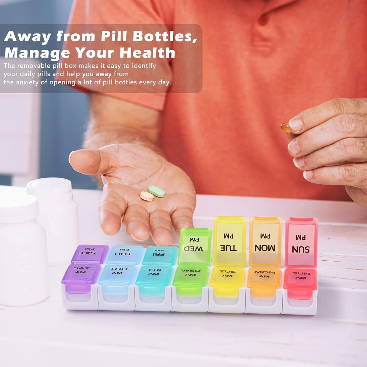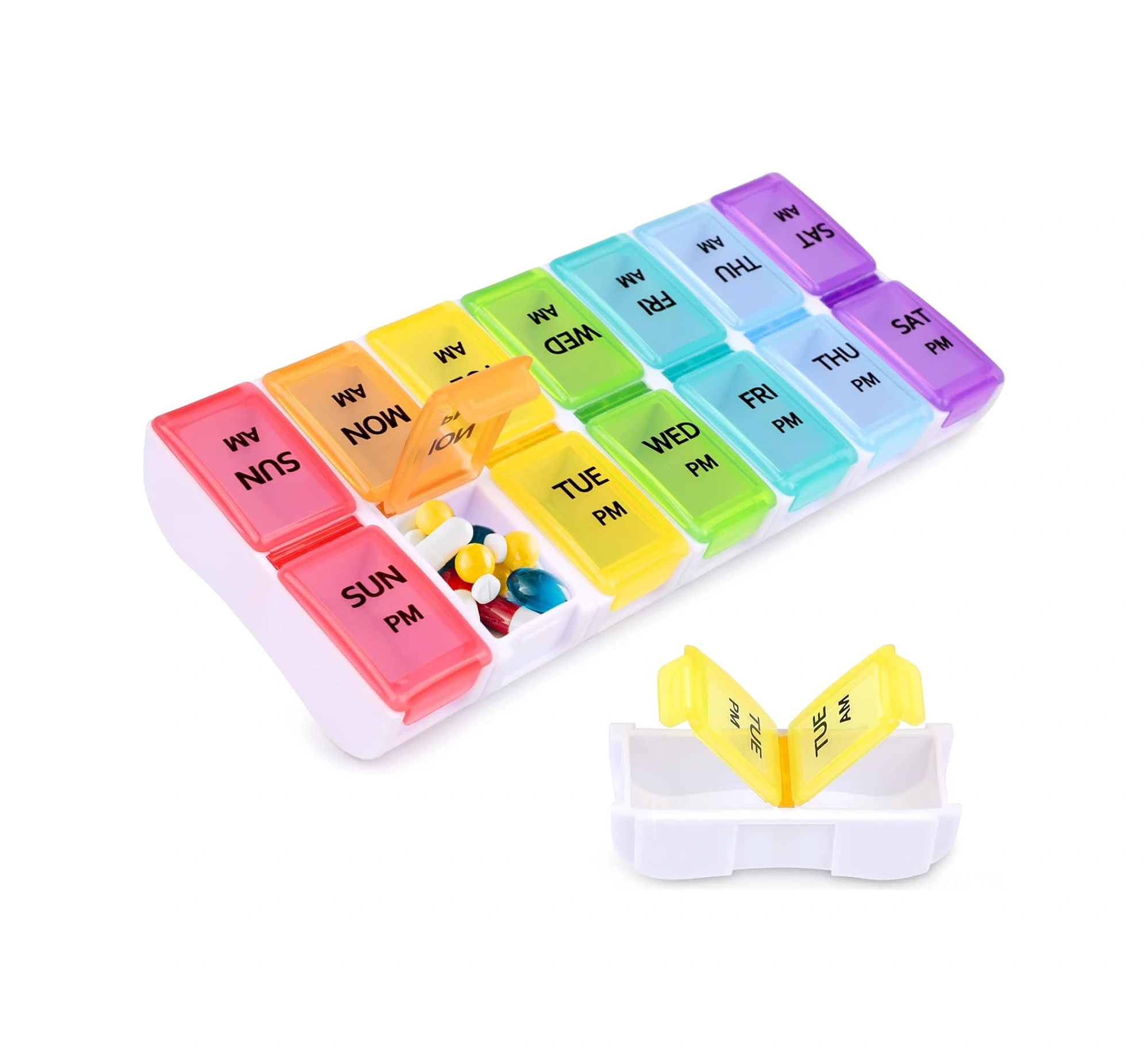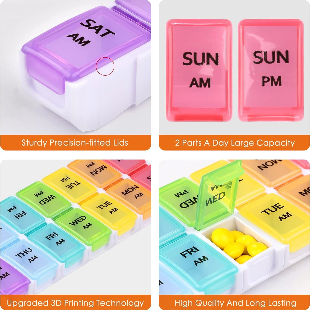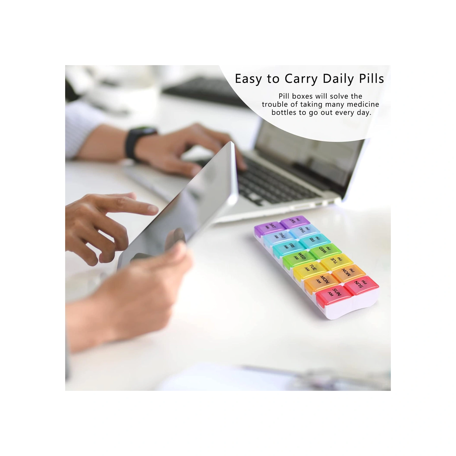 Kosona Haftalık 14 Bölmeli Sağlam İlaç Kutusu - Su Geçirmez Pp Malzeme, Kolay Taşınabilir, Güne Göre Renkli Bölmelerle İlaç Ve Küçük Eşya Saklama Kutusu Beyaz