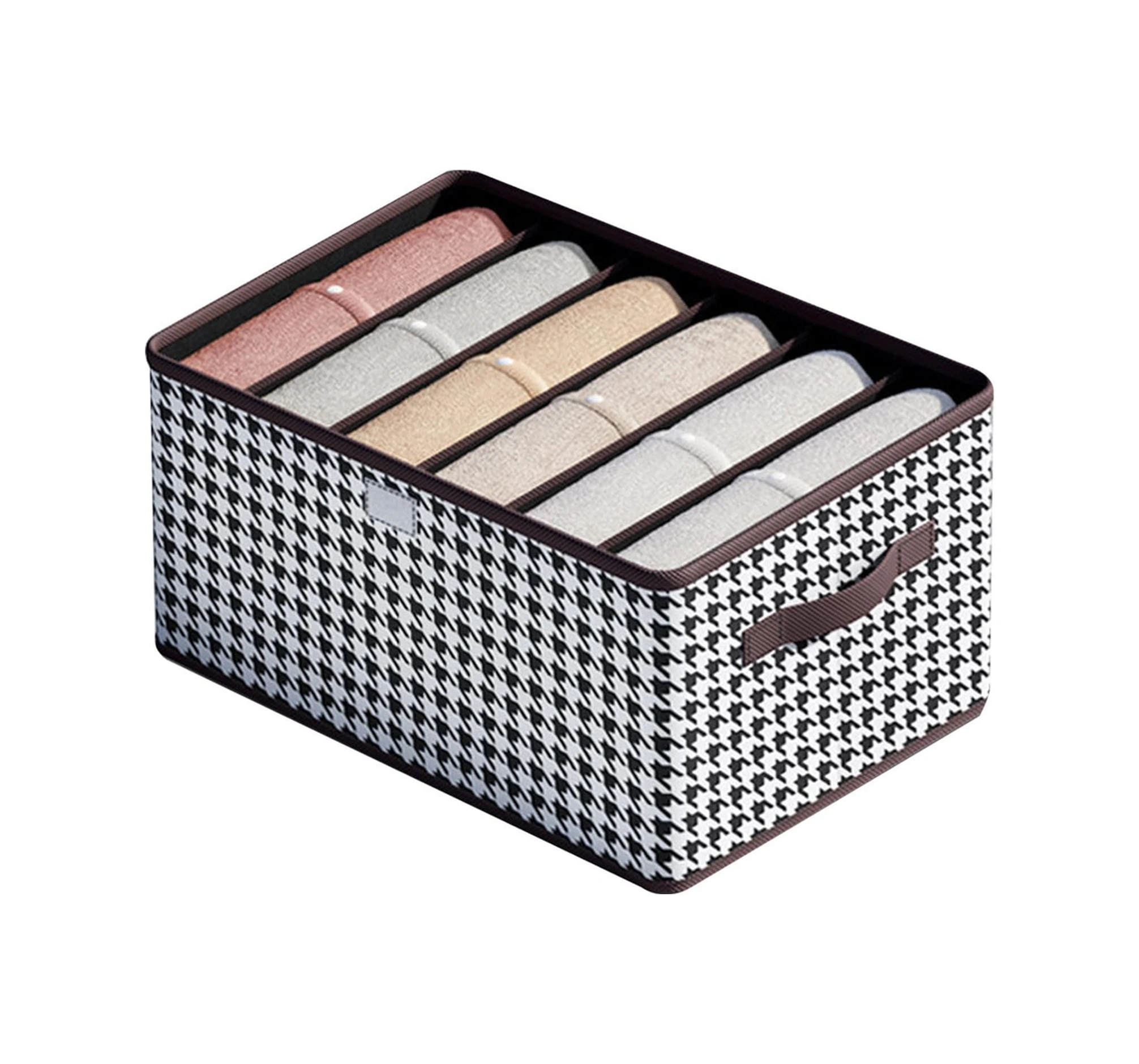 Kosona Houndstooth Desenli 6 Bölmeli Kollu Kumaş Depo Kutusu - 44x30x20 Cm - Çekirdekli, Yığılabilir, Ev İçi Giyim Ve Eşya Saklama Kutusu