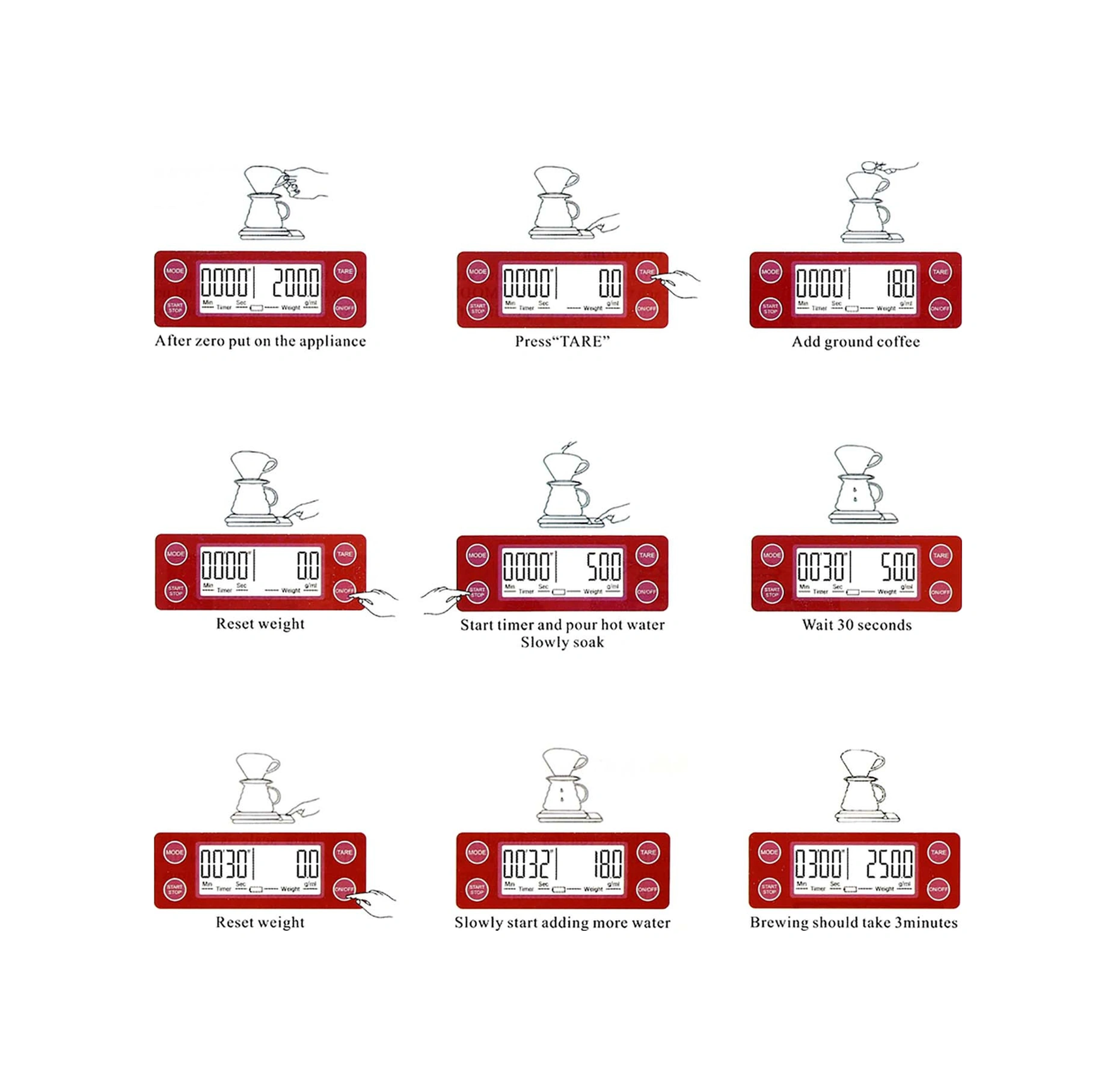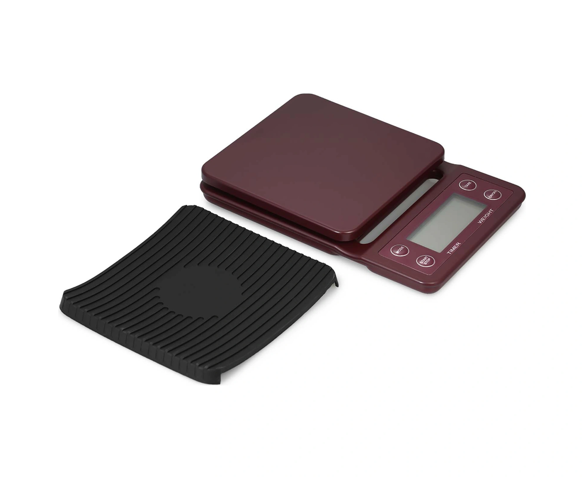 Kosona Kahve Ve Pastane İçin Zamanlayıcı Fonksiyonlu Mutfak Terazisi, 3kg/0.1g Hassasiyet, Bordo Rengi Pil Dahil Değil Bordo