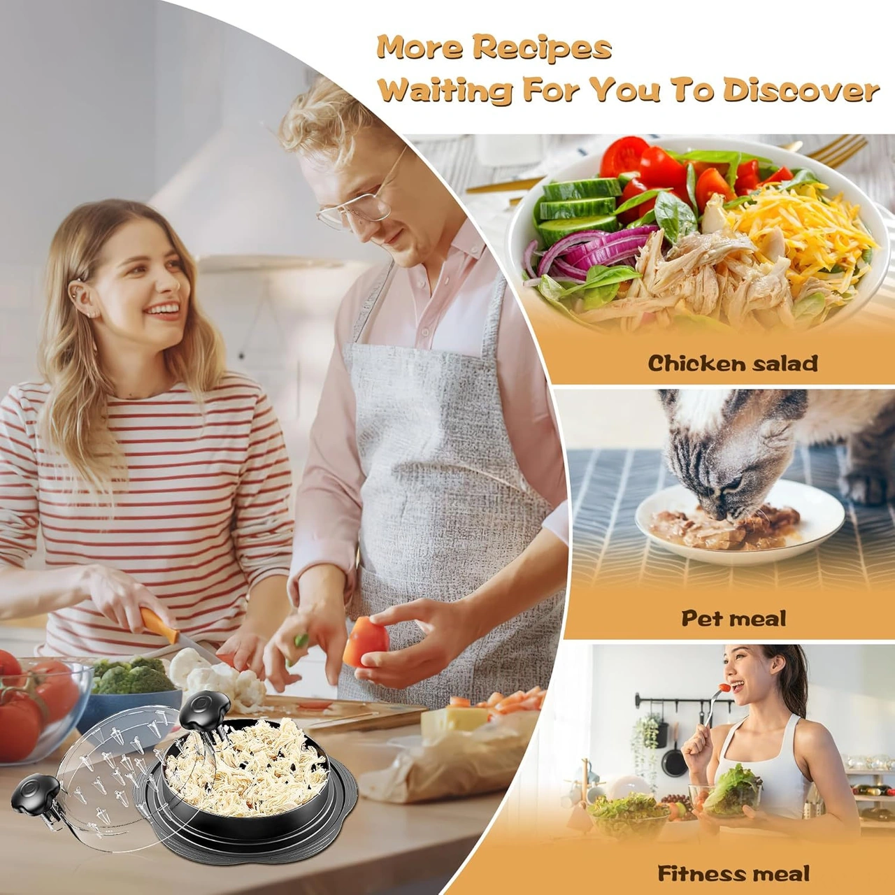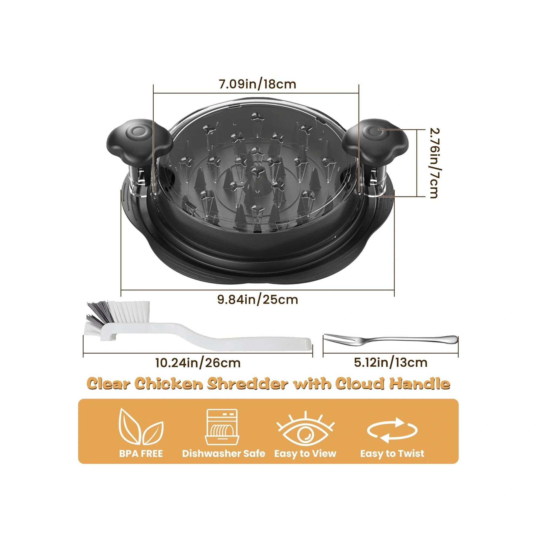 Kosona Kahverengi Tavuk Dilimleyici, Cam Kapağı, Ergonomik Saplı, Taze Et Kesici Aleti, Paslanmaz Çatal Ve Nilon Fırça İle Tam Set Siyah