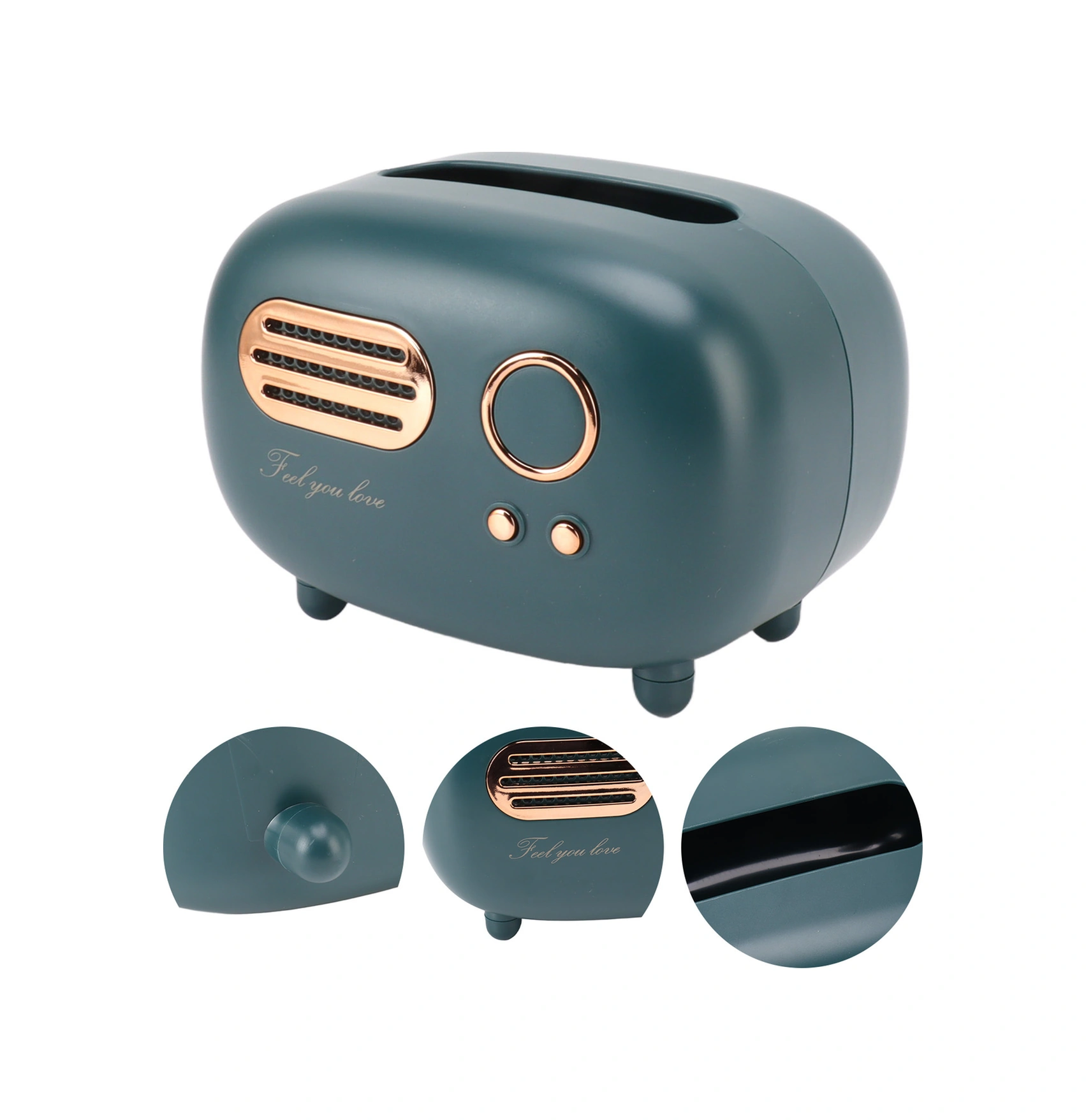 Kosona Klasik Radyo Desenli Plastik Mutfak Banyo Odası Dekoratif Multifonksiyonel Havlu Kutusu Kırmızı