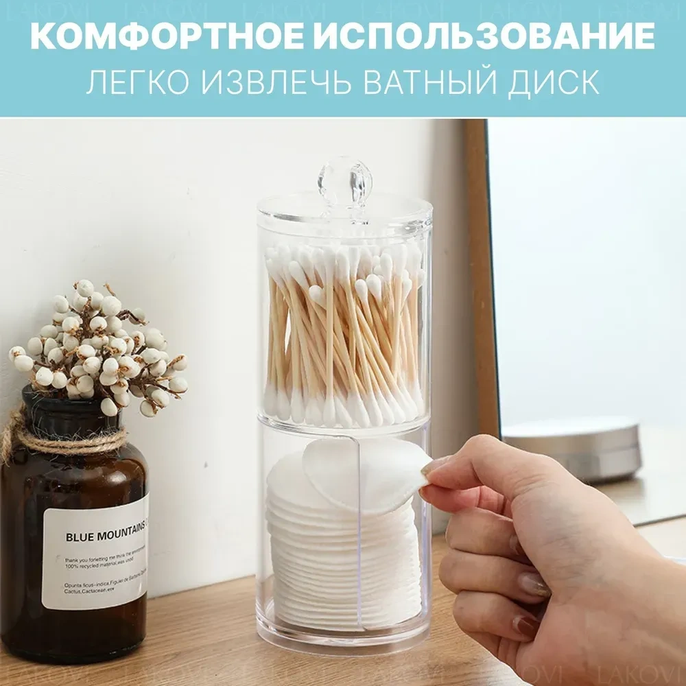 Kosona Makyaj Gereçleri Depolama Kutusu - Şeffaf Plastik, 2 Bölmeli, Pamuk Ve Q-tip Organizerı, Banyo/vanitaya Uygun Şeffaf