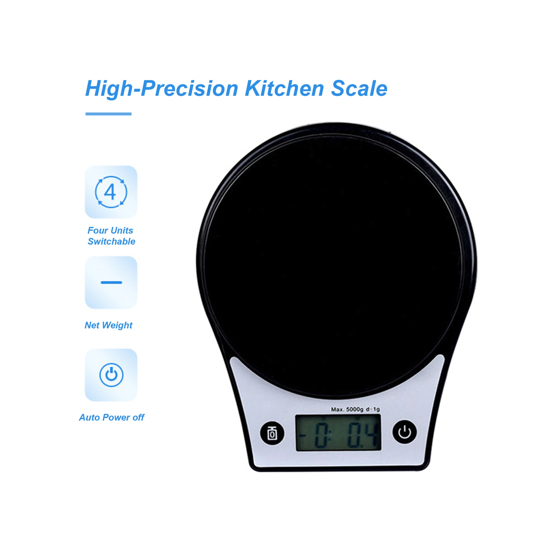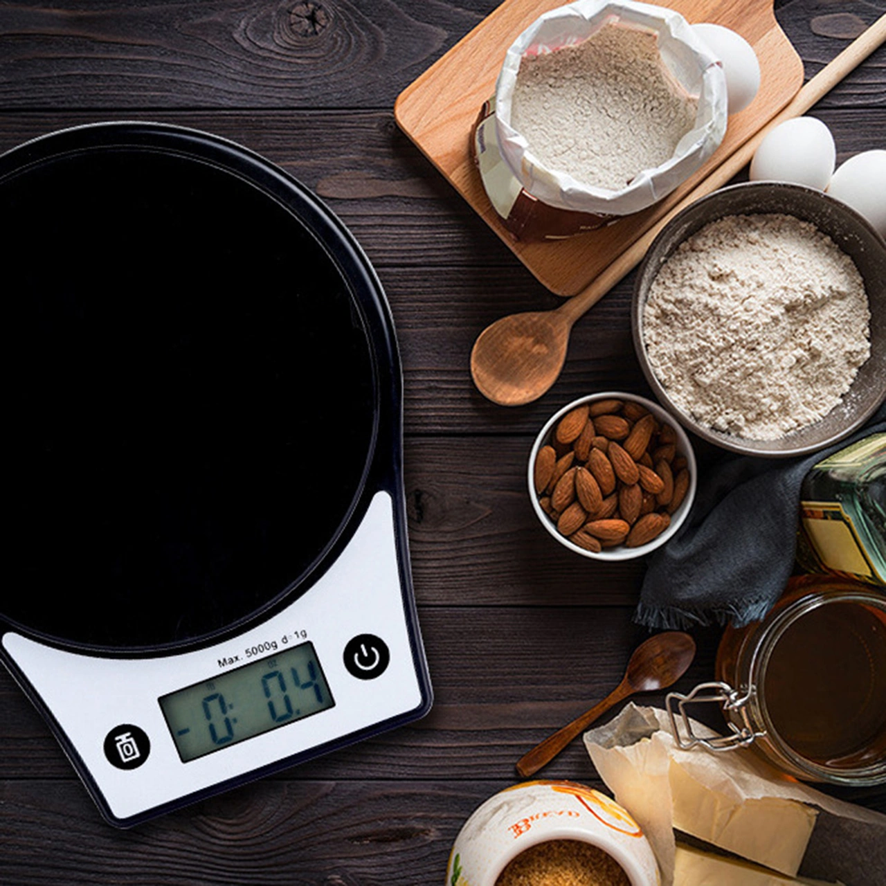Kosona Mutfak Tahta Terazi 1g-5kg Hassas Ölçüm, G/ml/oz/lb Birimleri, Abs Malzeme, Siyah Pil Dahil Değil Siyah