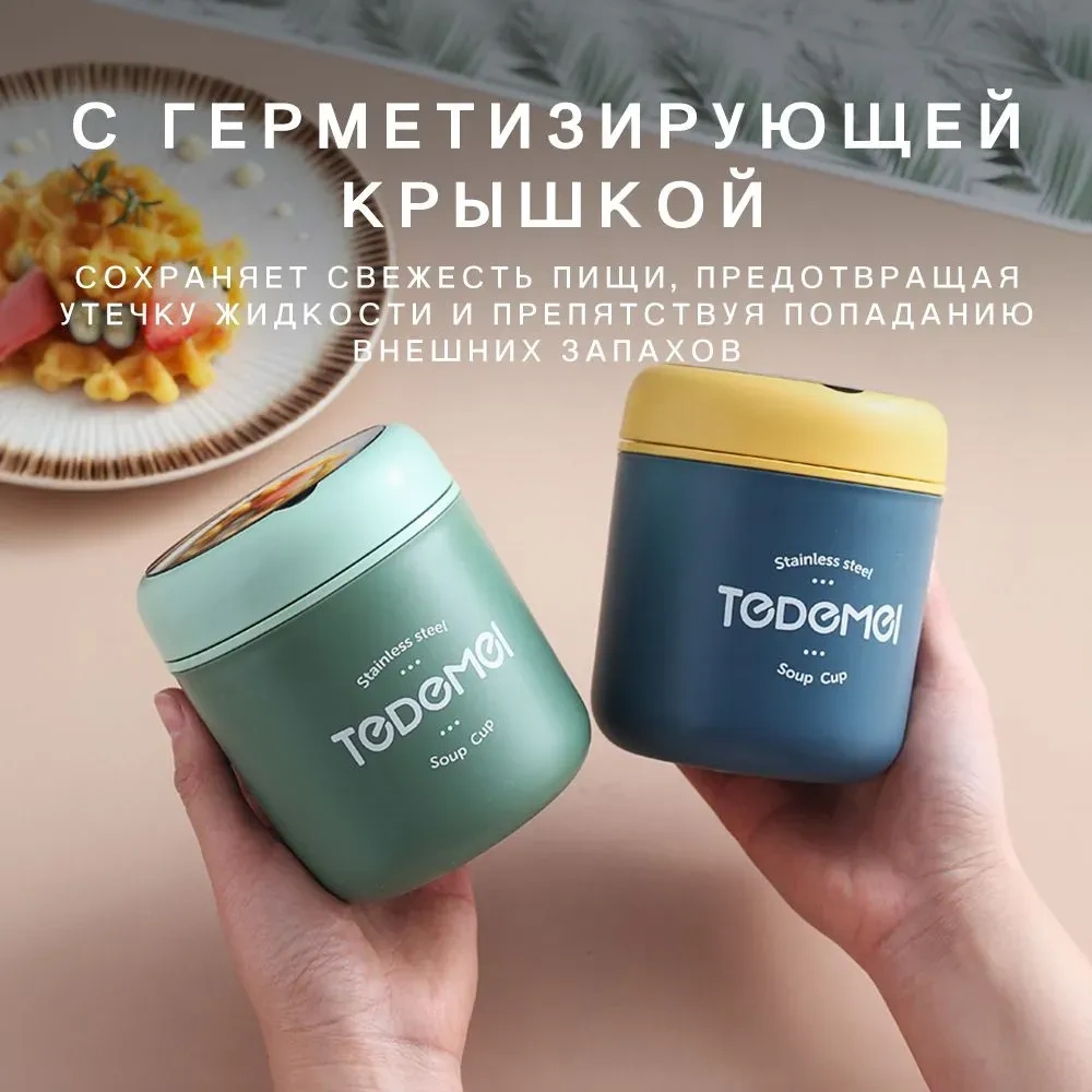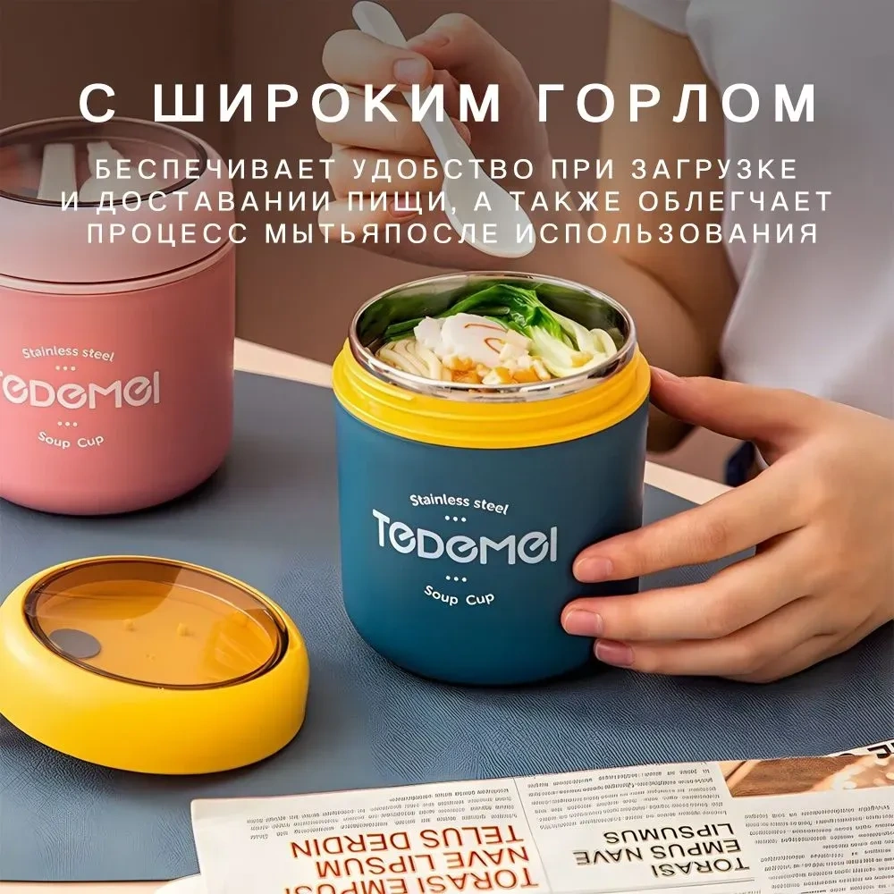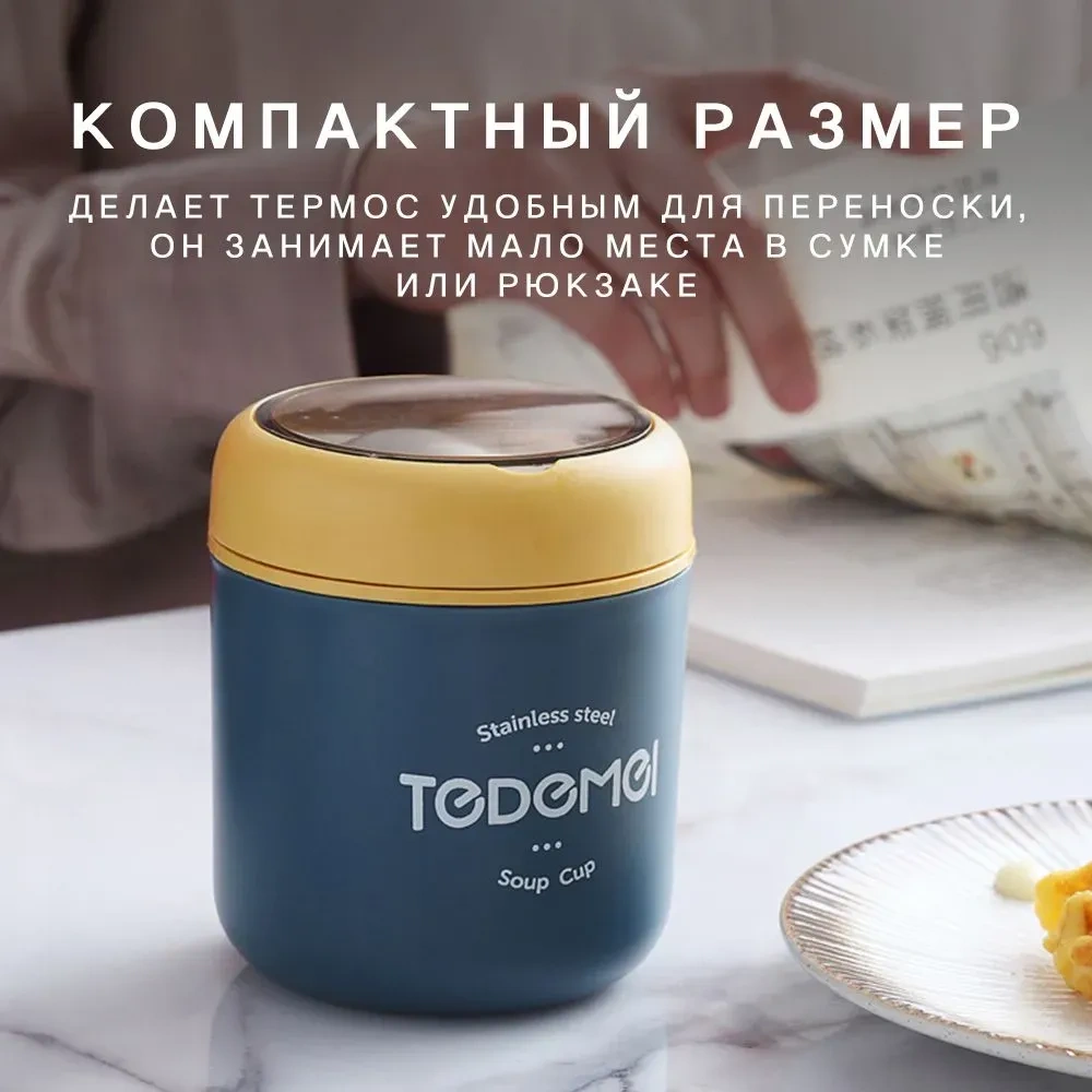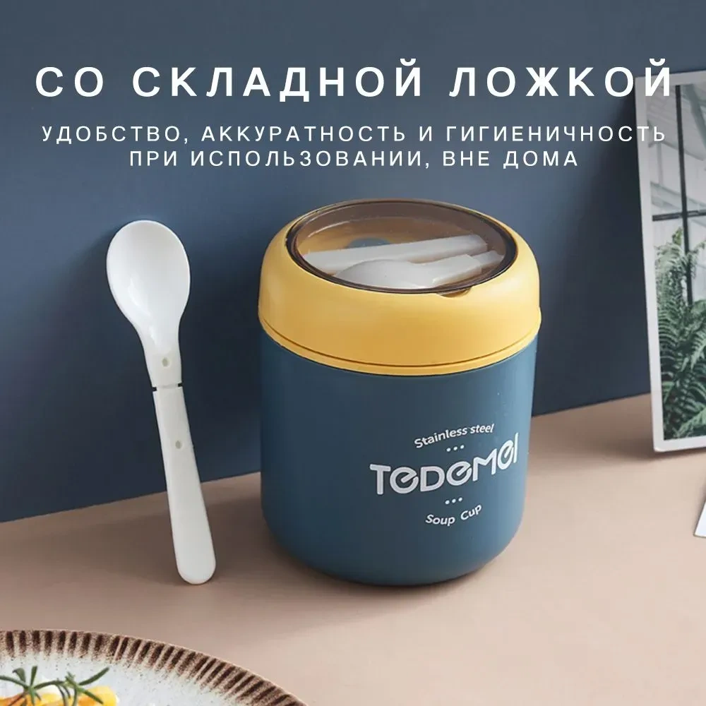 Kosona Podofo 0.53l Paslanmaz Çelik Isı Saklama Yemek Kutusu, Damlacık Sağlama, Yıkama Makinesine Uygun, Çekilebilir Kaşık İçeren Lacivert