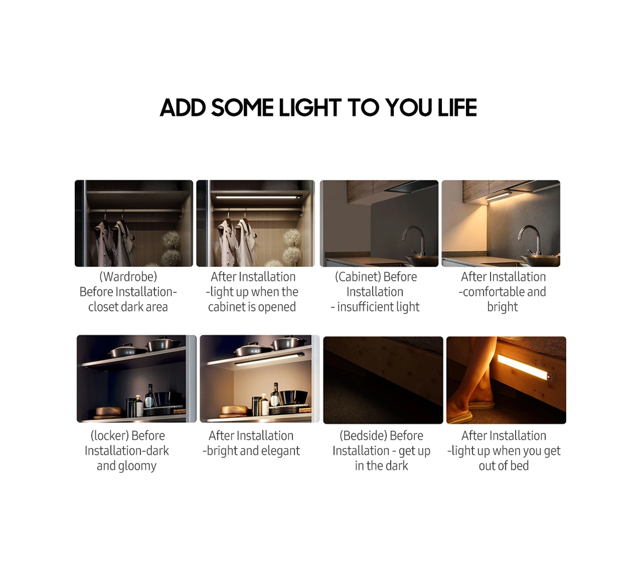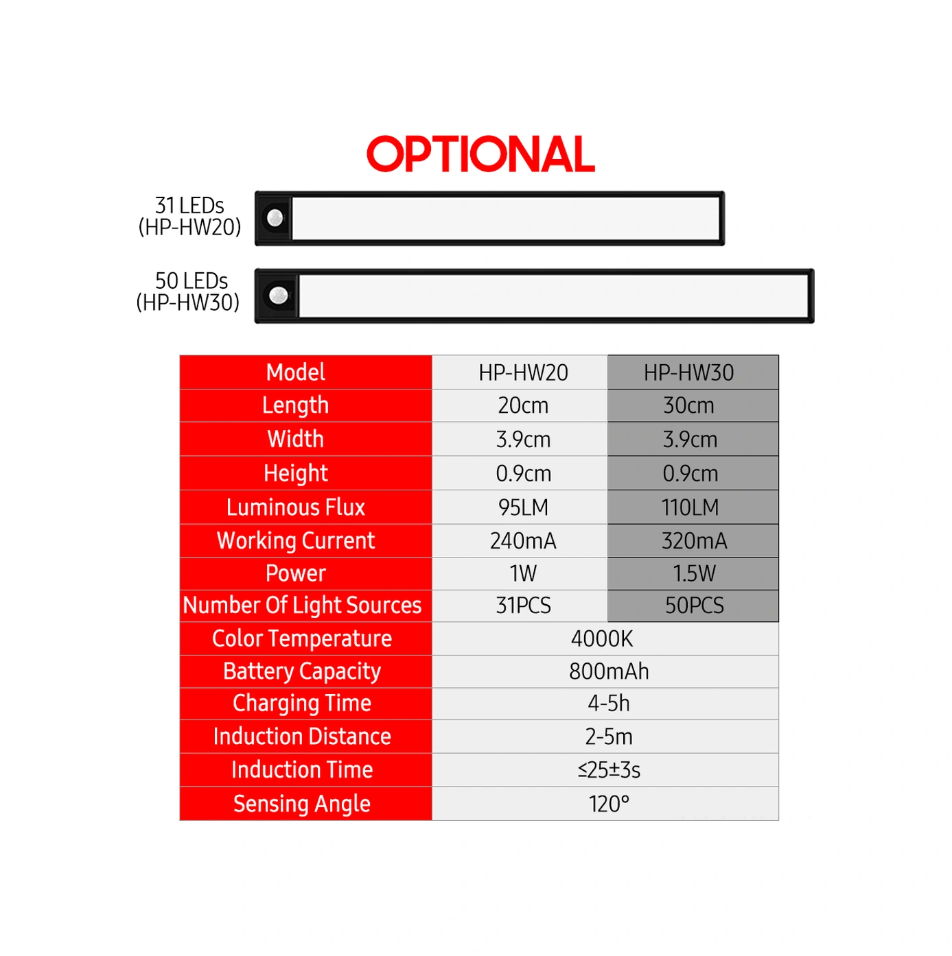 Kosona Siyah 50 Led'li Akıllı İnsan Algılama Işıklı Lambası - Şarj Edilebilir, Kablosuz, Manyetik, Dolap/ Mutfak Için Hp-hw30 Siyah