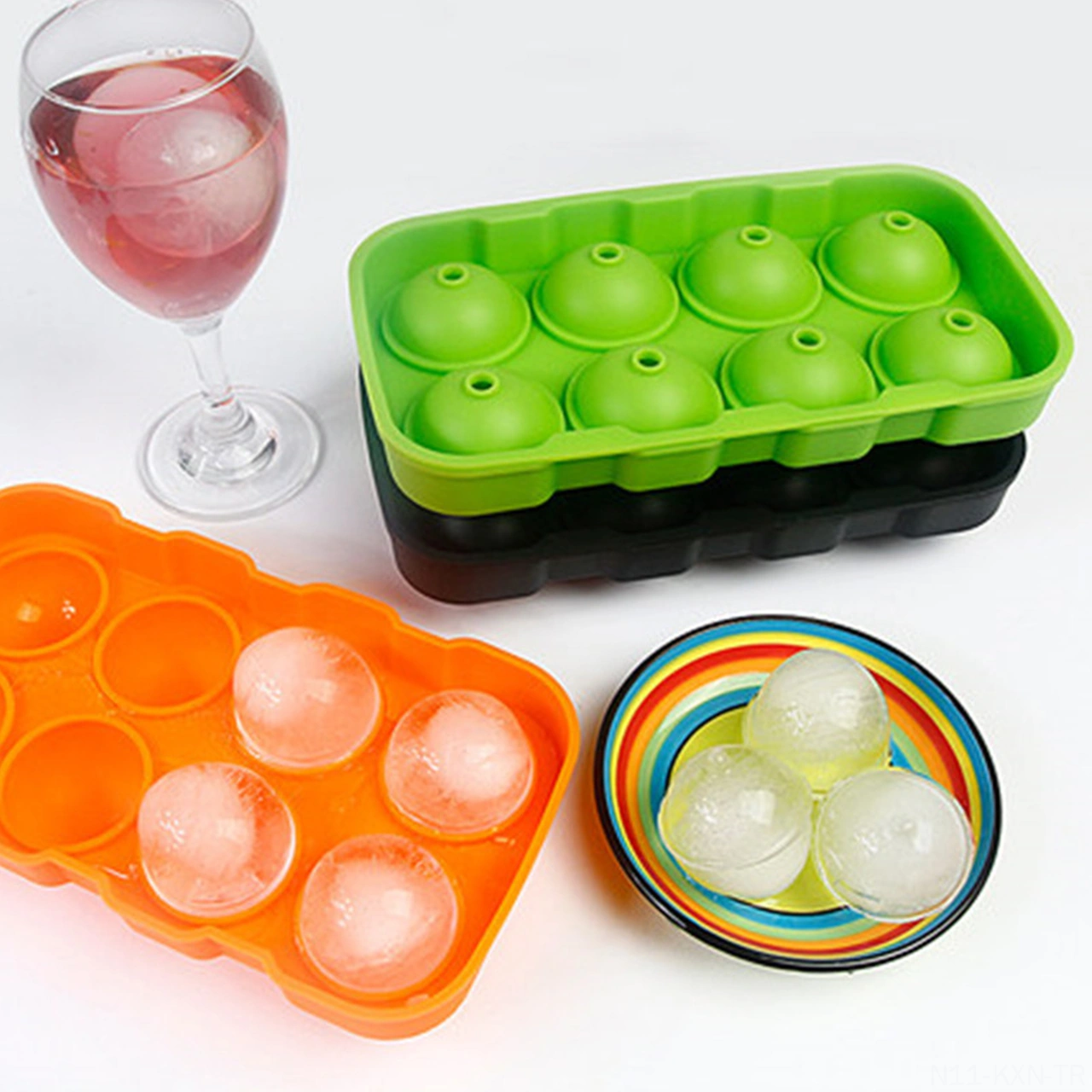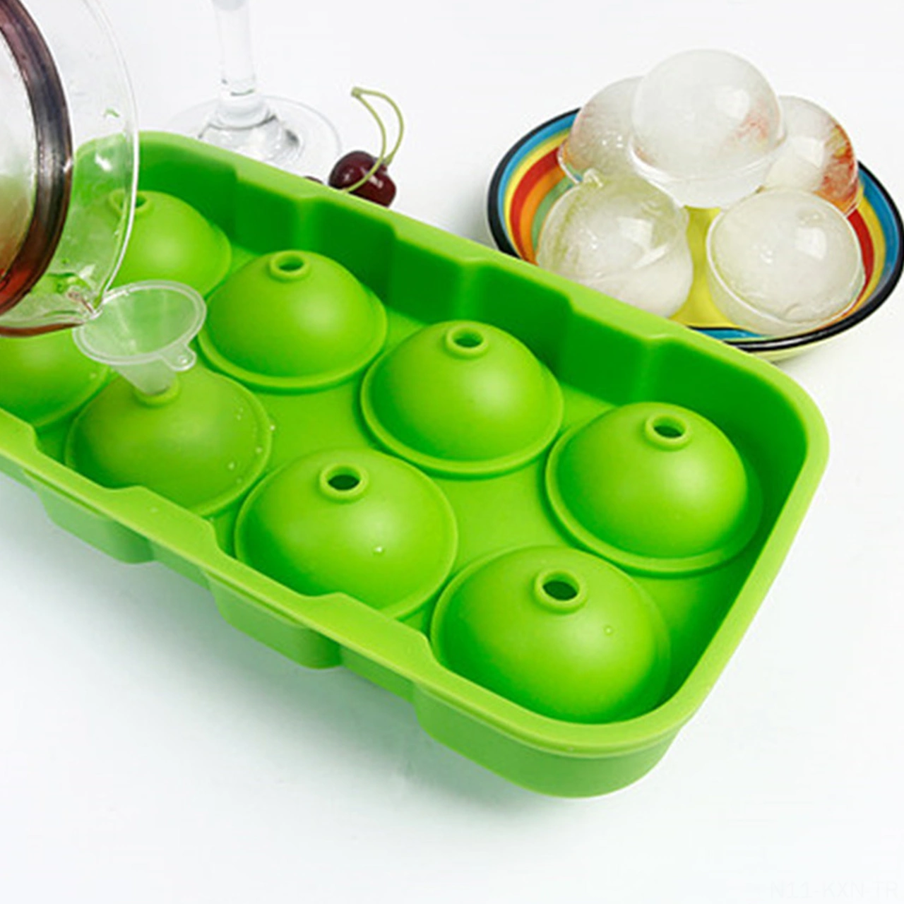 Kosona Yeşil 8 Hücre Silikon Buzluk, Geri Kullanalabilir, Kapağı Var, Kolay Buz Çıkarımı, Kokteyl Ve Kahve İçin Çok Renkli