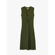 Koton Aerobin Kumaş V Yaka Kolsuz Kruvaze Midi Boy Elbise Haki 5sak80130pw Haki