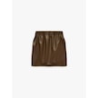Koton Beli Lastikli Diz Üstü Deri Görünümlü Etek Kahverengi 6wkg70019ak Kahve