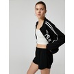 Koton Fermuarlı Sweatshirt Crop Dik Yaka Çizgili Baskılı Siyah 4sal10510ık Siyah