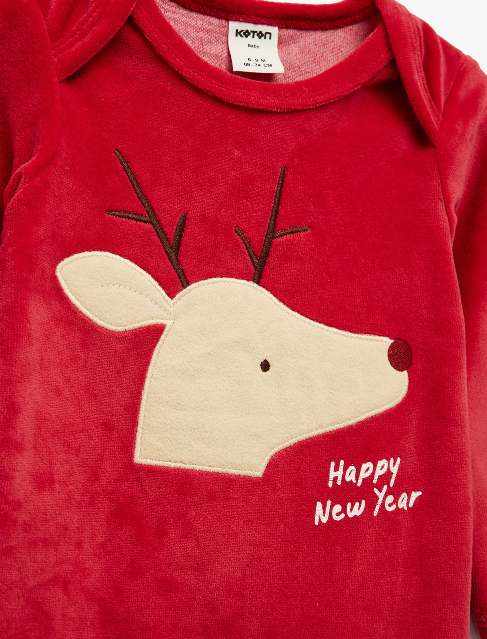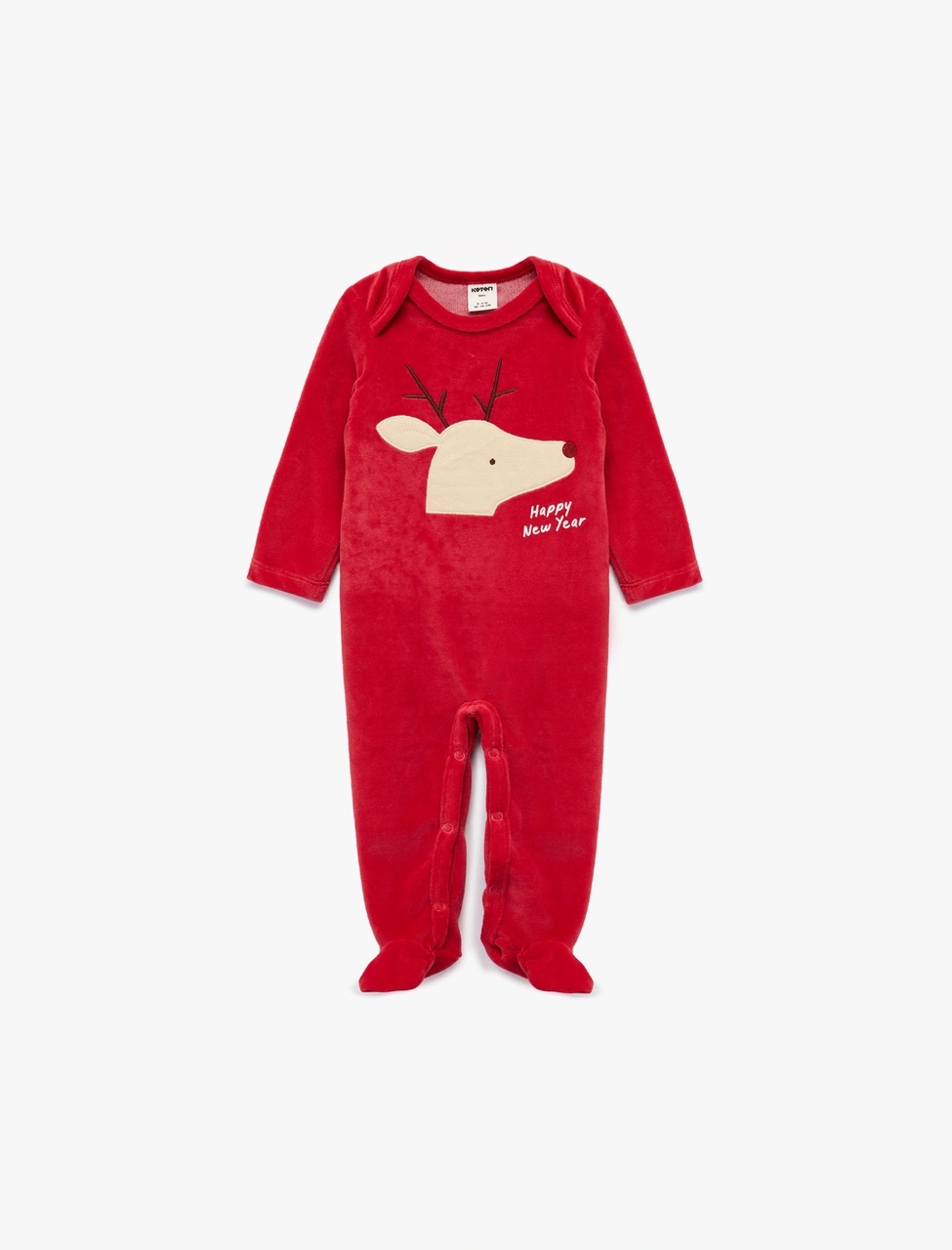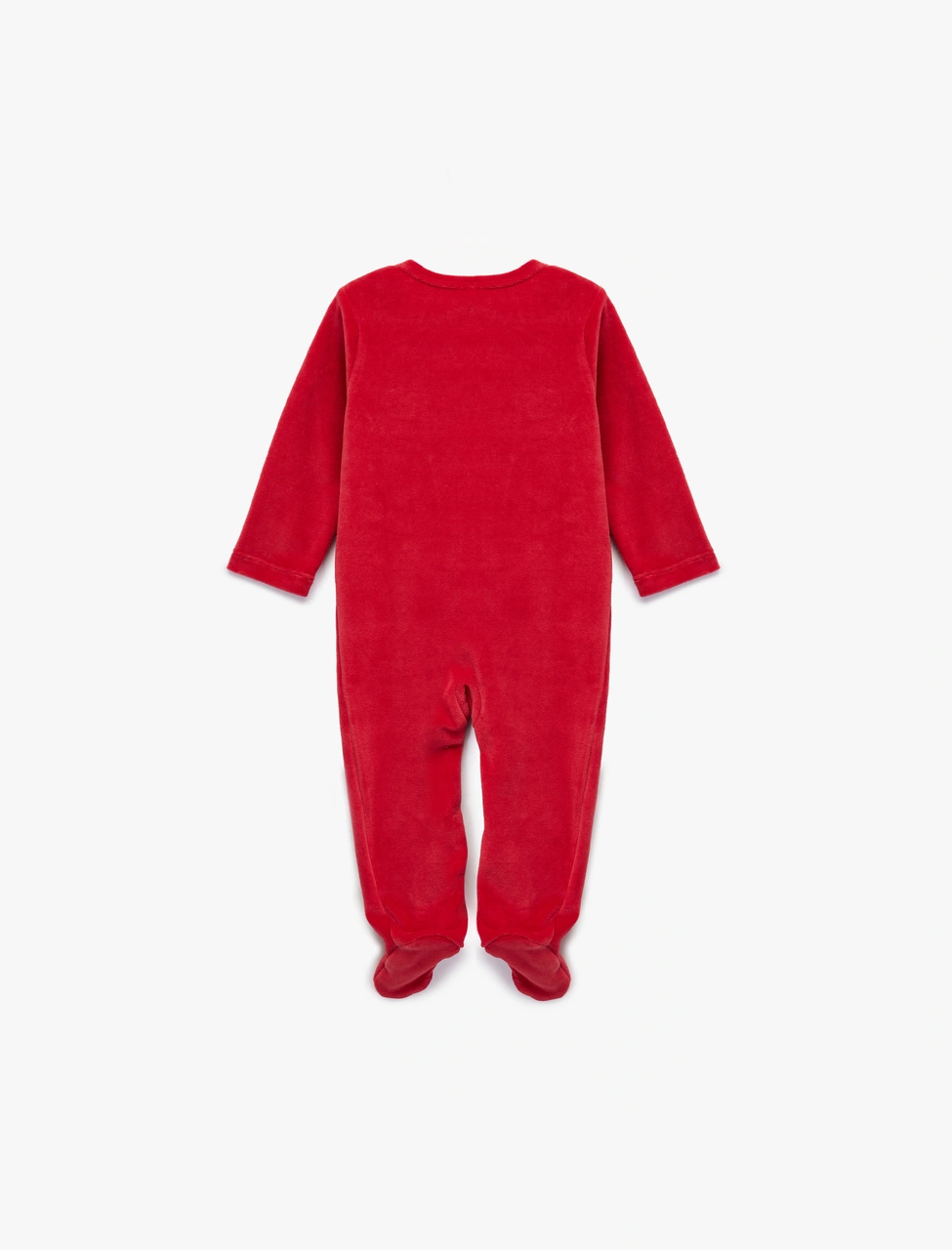 Koton Geyik Nakışlı Uzun Kollu Bisiklet Yaka Pamuklu Kadife Tulum Kırmızı 6wmb10037tk Kırmızı