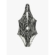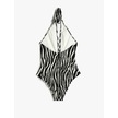 Koton Halter Yaka Mayo Zebra Desenli Derin V Yaka Pencere Detaylı Siyah Çizgili 4sak20110mm Siyah
