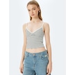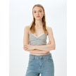 Koton İp Askılı Çizgili V Yaka Slim Fit Fitilli Atlet Ekru Çizgili 5sal30078ık Ekru Çizgili Ekru