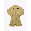 Koton Kemerli Cepli Gömlek Yaka Kısa Kollu Modal Kumaş Şort Tulum Khakı 5sak80323ew Haki