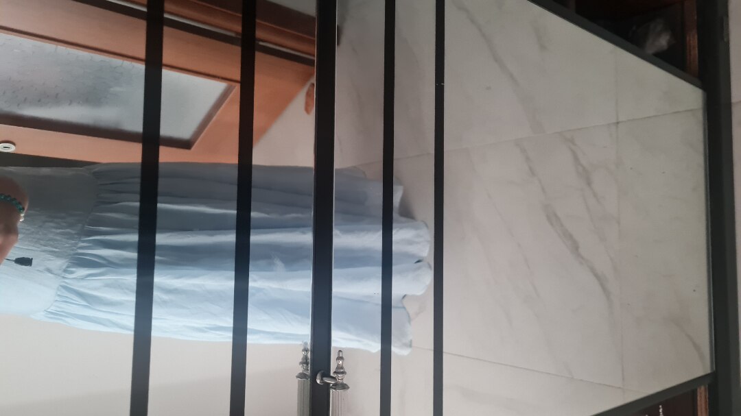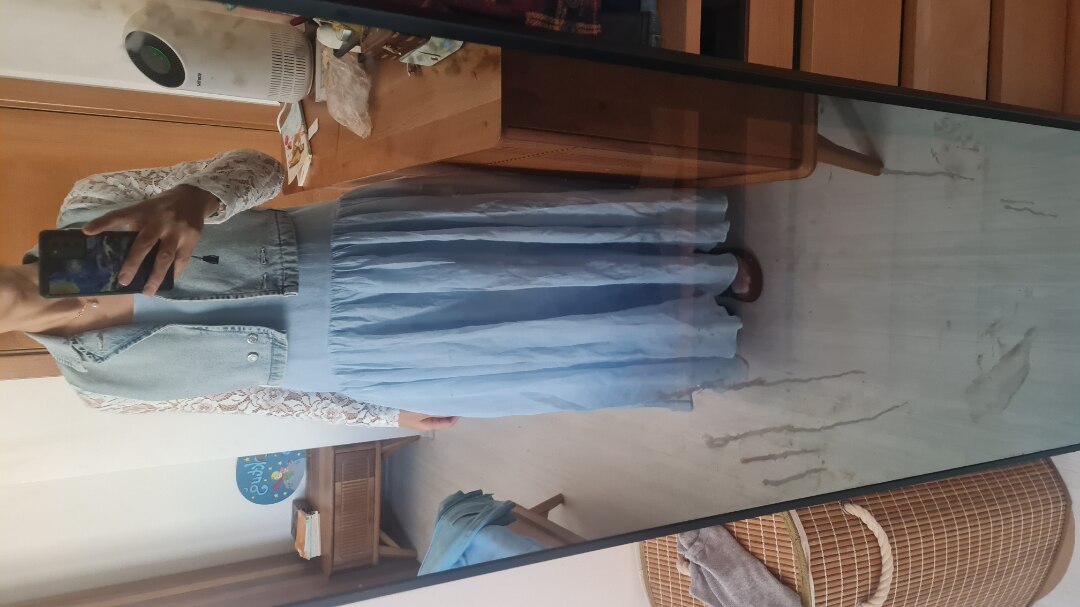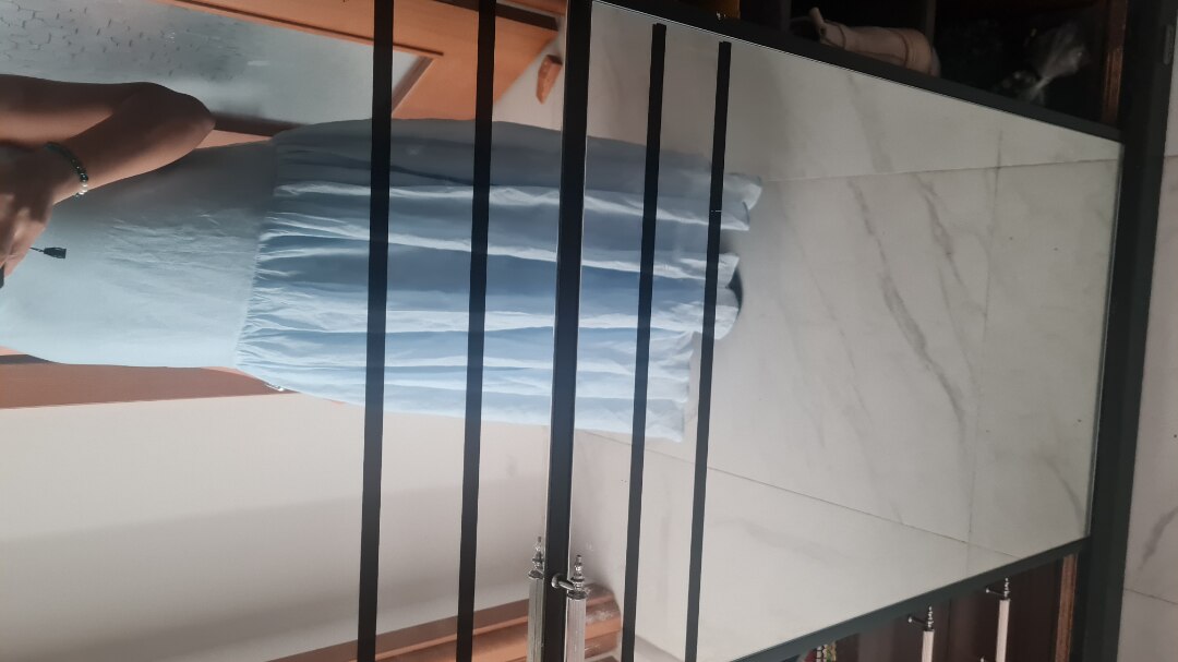 S beden olmasına rağmen çok büyük ve belden oturmuyor etek kısmı. çok aşağıdan saçmasapan bir elbise yapmışlar. güzelim kumaşa yazık olmuş. duruşu çok kötü. iade