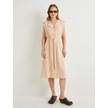 Koton Midi Gömlek Elbise Beli Kuşaklı Düğmeli Cepli Apoletli Bej 4sak80001pw Ekru