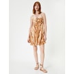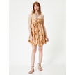 Koton Mini Elbise Boyundan Bağlamalı Askılı Boncuklu Viskon Keten Karışımlı Kahverengi Desenli 4sak80302ew