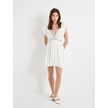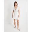 Koton Mini Viskon Elbise V Yaka Kısa Kollu Taş Detaylı Krema 4sak80074pw