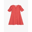 Koton Puantiyeli Elbise Balon Kollu Düğme Kapamalı Viskon Kumaş Kırmızı Desenli 5skg80029aw Kırmızı