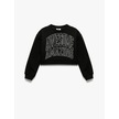 Koton Şardonlu Uzun Kollu Bisiklet Yaka Taş Detaylı Sweatshirt Siyah 6wkg10208ak Siyah