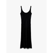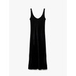 Koton Slim Fit Kolsuz U Yaka Kalın Askılı Uzun Saten Elbise Siyah 6wak80025uw Siyah
