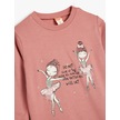 Koton Sweatshirt Balerin Baskılı Uzun Kollu Şardonlu Pamuklu Pembe 5wmg10100ak Gülkurusu