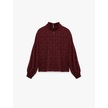 Koton Uzun Balon Kollu Fırfırlı Dik Yaka Dantelli Bluz Bordo 6wak80190ek Bordo
