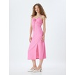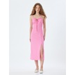 Koton Uzun Elbise Keten Karışımlı Askılı Yırtmaçlı Önü Bağlamalı Pembe 4sal80043ıw Gül