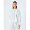 Koton Uzun Kollu Bluz Manşetli Yuvarlak Drapeli Yaka Krep Kumaş Kırık Beyaz 5wak60087uw Ekru