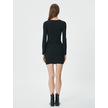 Koton Uzun Kollu Elbise Mini Yuvarlak Yaka Fitilli Siyah 4wak80400ek Siyah