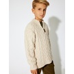 Koton Yarım Fermuarlı Saç Örgüsü Detaylı Uzun Kollu Kazak Ekru 5wkb90004ht Ekru