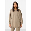Koyu Bej O Yaka Basic Oversize Kadın Eşofman Tunik Takım - 95347 Bej