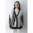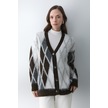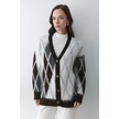 Koyu Kahverengi - Krem Baklava Desenli Hırka - 251090 Koyu Kahverengi