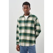 Koyu Lacivert Yünlü Ekose Desen Yumuşak Yaka Cepsiz Uzun Kol Casual Comfort Fit Gömlek 1004245227 Koyu Lacivert