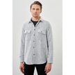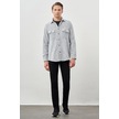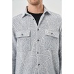 Koyu Mavi Uzun Kol Kendinden Desenli Gabardin Sert Yaka Kapaklı Cep Pamuklu Classic Comfort Fit Gömlek 1004245167 Koyu Mavi